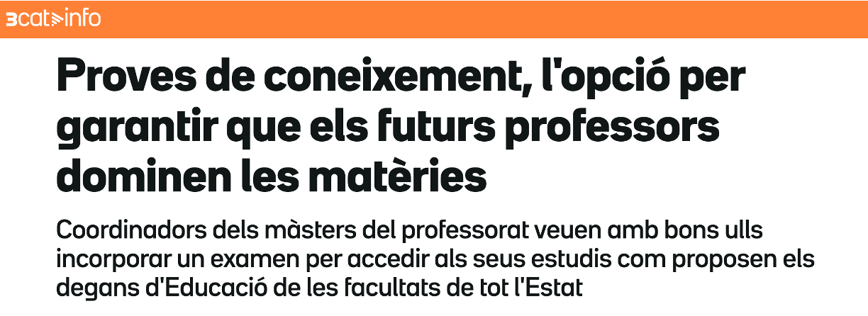 Albert Mallart, coordinador del Máster Interuniversitario de Formación del Profesorado de Secundaria en la especialidad de Matemática y miembro de GIPEAM, ha sido entrevistado por 3CatInfo sobre la posibilidad de incorporar un examen para acceder a estos estudios.
